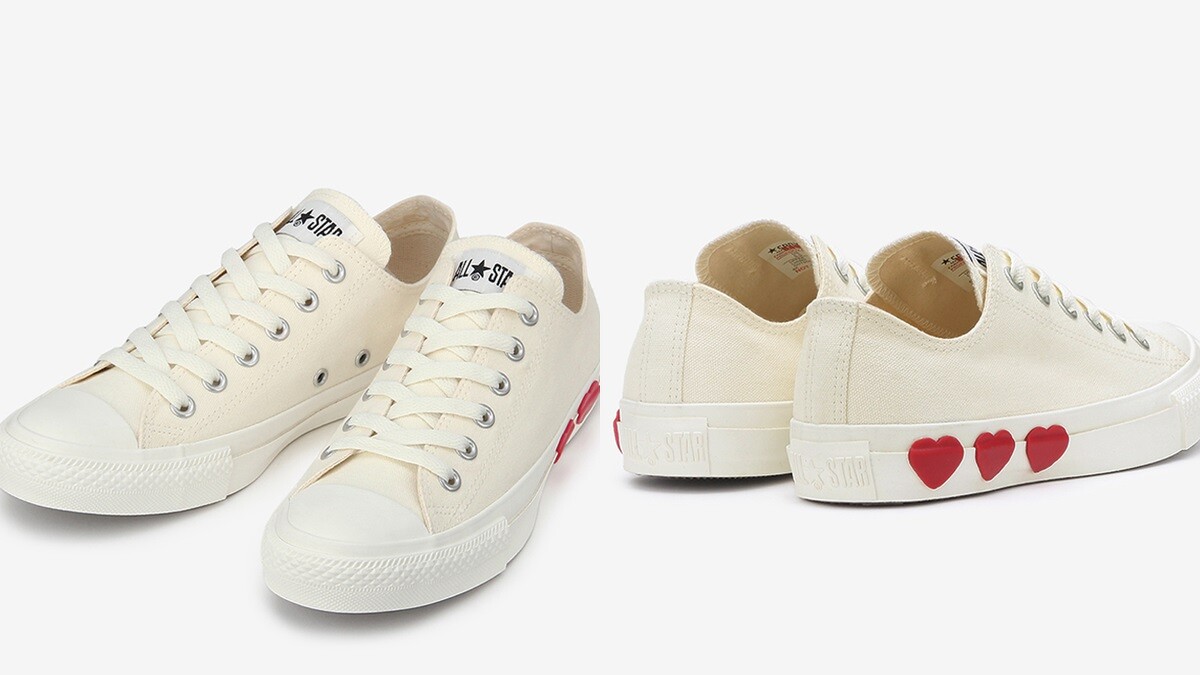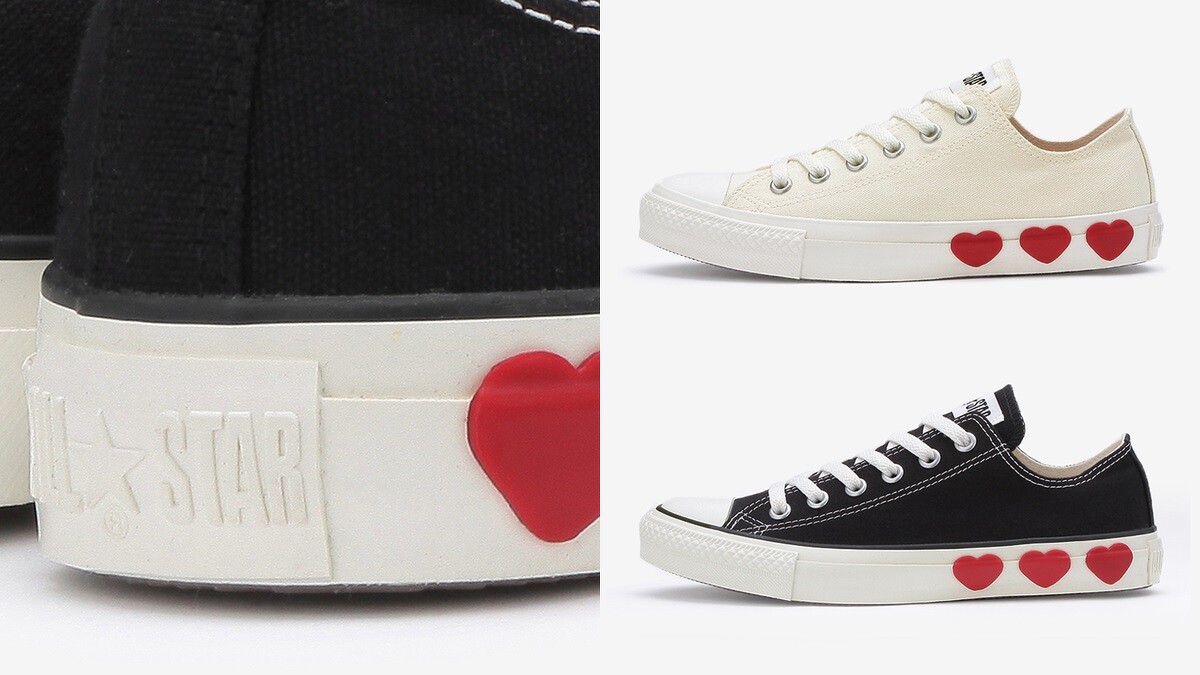 以基本低筒鞋款,結合最能代表情人節元素的愛心,打造「ALL STAR THREEHEARTS OX」限定系列,最大亮點就是在鞋側底部放上三顆立體紅色愛心,小小的巧思卻能表達滿滿愛意,非常適合情人節送禮擄獲女孩的芳心。