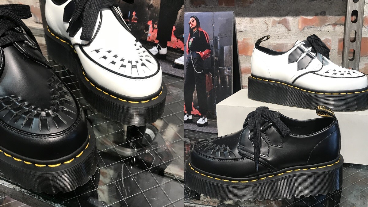 最後則是酷女孩命定鞋款「Quad Creepers」系列,這雙厚底編織尖頭鞋是以柔順Polished Smooth皮革製成,鞋面上飾以編織交錯的圖樣與D型鞋帶環,再配上經典黃色車縫線與後跟標,可是不少街頭女孩的愛鞋之一。(厚底編織尖頭鞋,NT6,880)