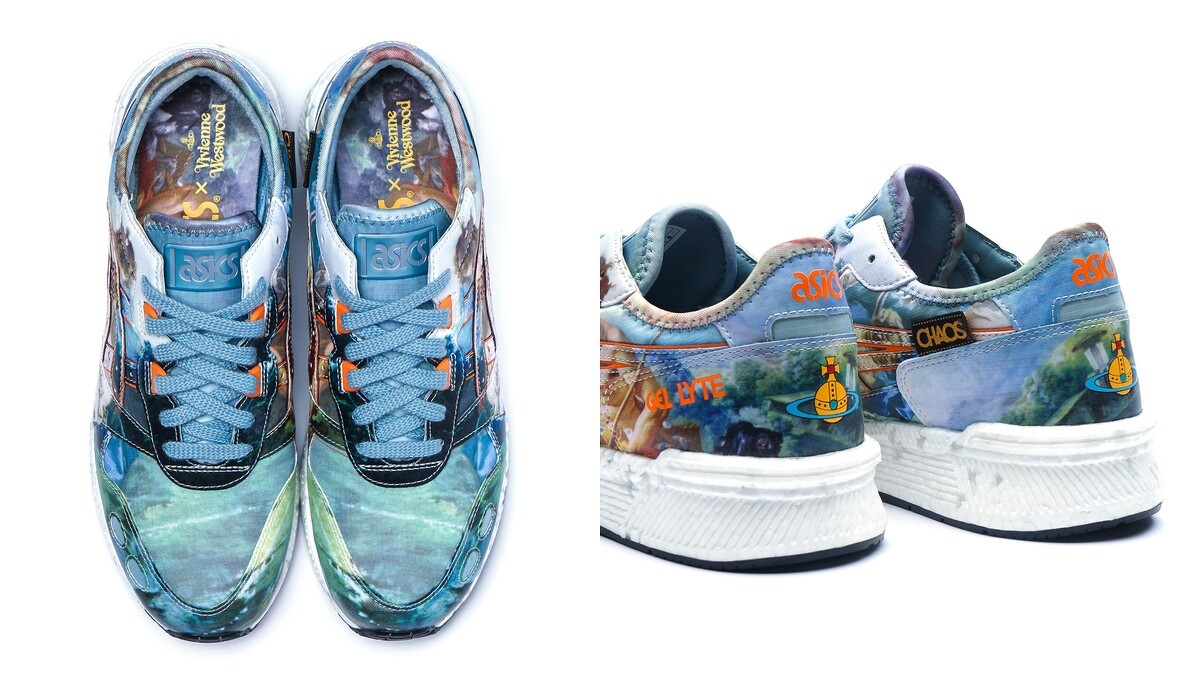 以VIVIENNE WESTWOOD經典ORB土星標誌作為靈感的GEL-DS TRAINER OG鞋款,天空藍、旭日紅和宇宙灰的撞色鞋身設計,拼接網眼、麂皮、皮革、反光飾條等材質,與品牌華麗大膽的精神不謀而合,鞋墊上則印有法蘭索瓦·布雪創作的「DAPHNIS AND CHLOË」畫作,鞋側也裝飾上VIVIENNE WESTWOOD品牌著名的“CHAOS”黑黃旗標元素。