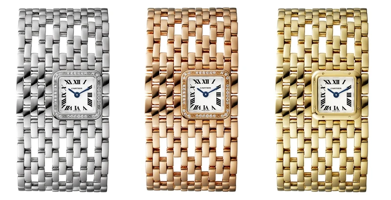 Panthère de Cartier白K金手環腕錶,Panthère de Cartier玫瑰金手環腕錶,Panthère de Cartier黃K金手環腕錶。