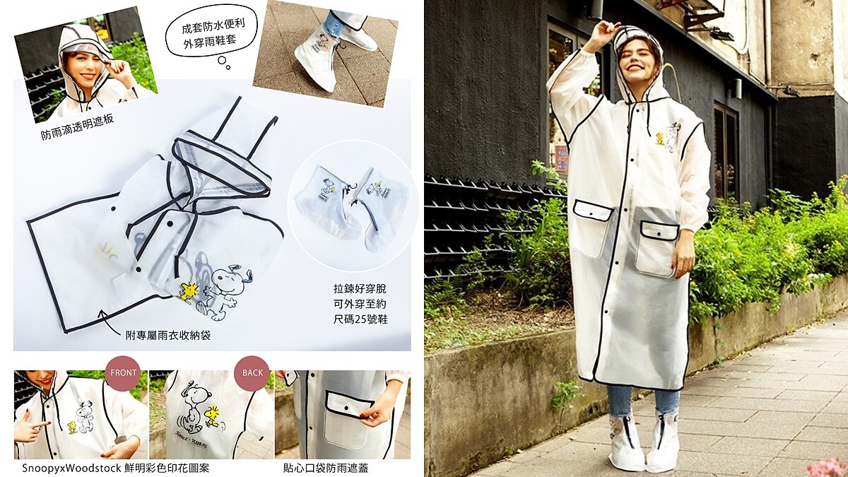 此外,KINAZ還打造了獨家贈禮「史努比聯名時髦撞色雨衣雨鞋套組」,只要購買跳跳舞系列任一包款就能獲得這個實用雨具套組。雨衣加了防雨滴透明遮板及貼心口袋設計,和便利外穿雨鞋套,絕對是下暴雨時必備單品。