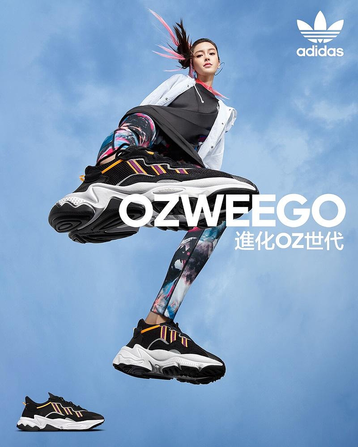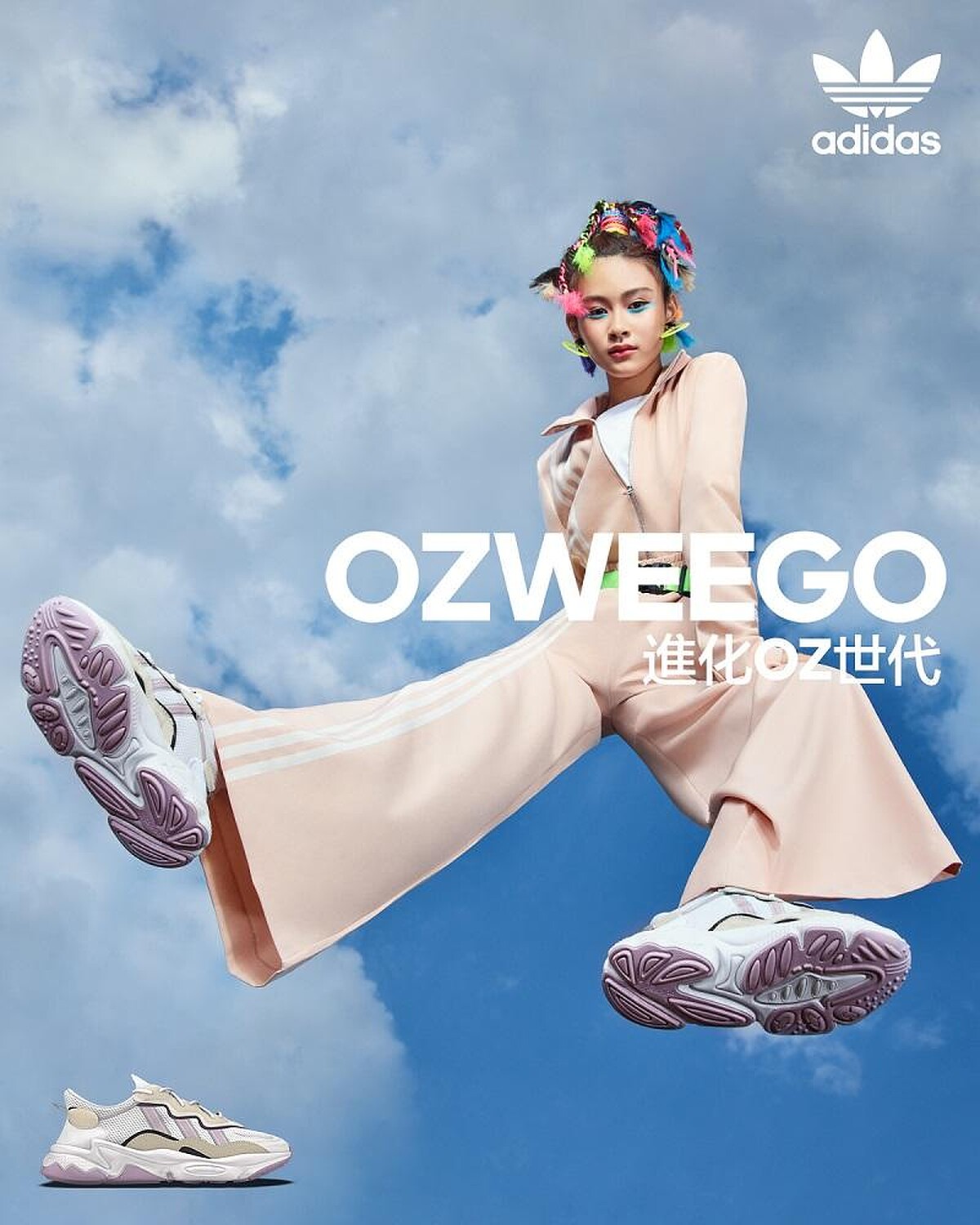 除了有百搭的全黑款、螢光配色款,還有女孩會愛的純白混搭薰衣草紫的款式,王嘉爾、Angelababy、水原希子、易烊千璽、饒舌歌手Dough boy、星二代潮模高橋Lala率先穿上詮釋起形象廣告,超厚的寬大鞋底設計讓人一穿上就能偷偷拉高比例,全系列已於8月8日發售。