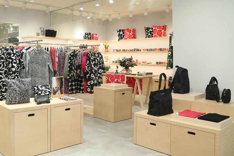 這次全新店裝設計特別將北歐芬蘭自然景色具體呈現,秉持品牌的樂觀與繽紛色調,並以向大自然的對話作為靈感,將概念店從原本的簡約色系轉成暖色調,讓整體營造出溫暖氛圍,也更能襯托出品牌經典的印花服裝、配件與家居生活系列。
