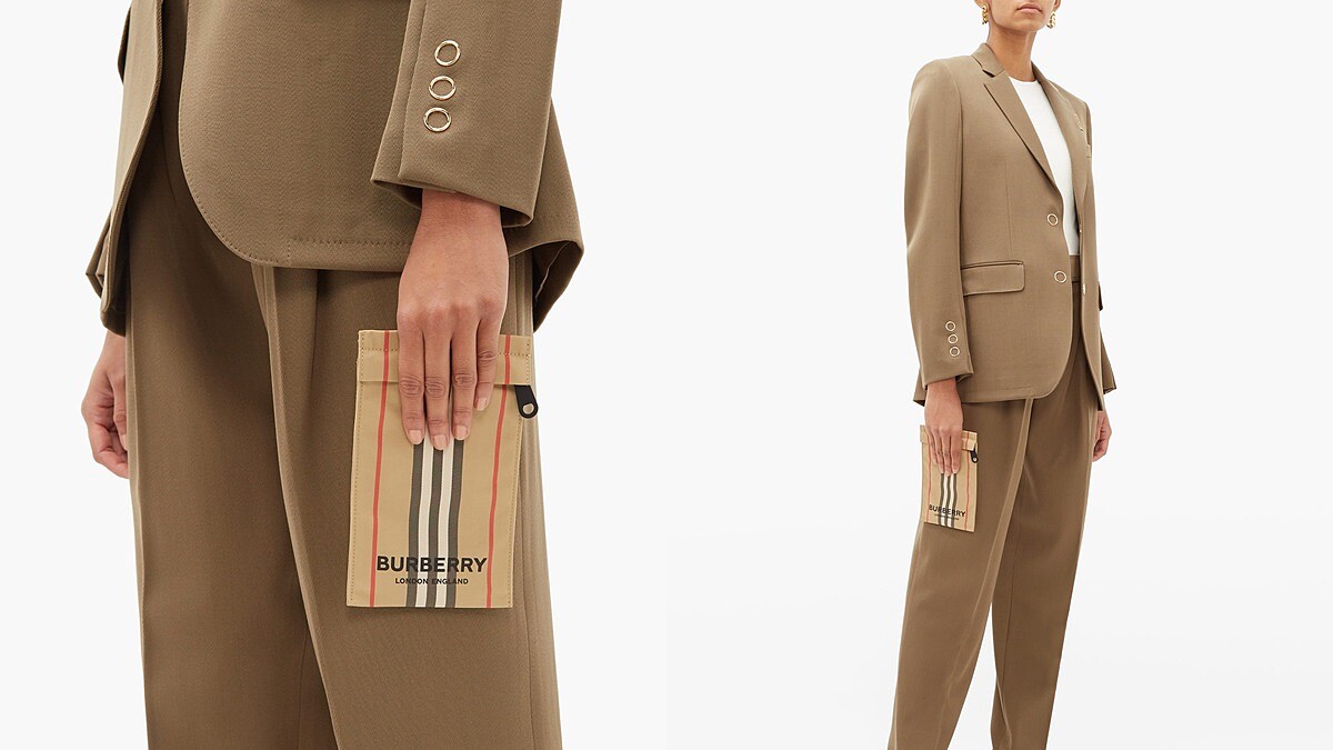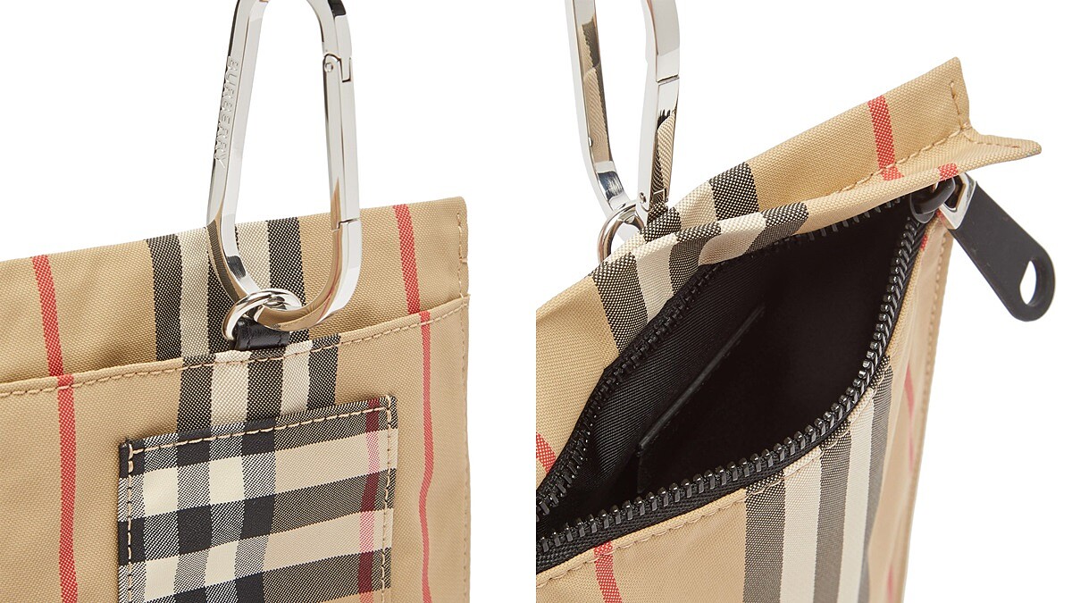 小包趨勢越演越烈!Burberry也推出一款可放置手機、隨身小物的條紋帆布手機袋,運用品牌經典米、白、黑、紅色條紋打造而成的Mini Bag,壓印上品牌最新的LOGO標誌辨識度極高,特別的是加了銀色的吊環,可以隨身繫在包包或褲子腰帶上,身為潮流迷的你怎麼能錯過呢!目前在MATCHESFASHION網站上可以購買,價格為238歐元(約8,300台幣)