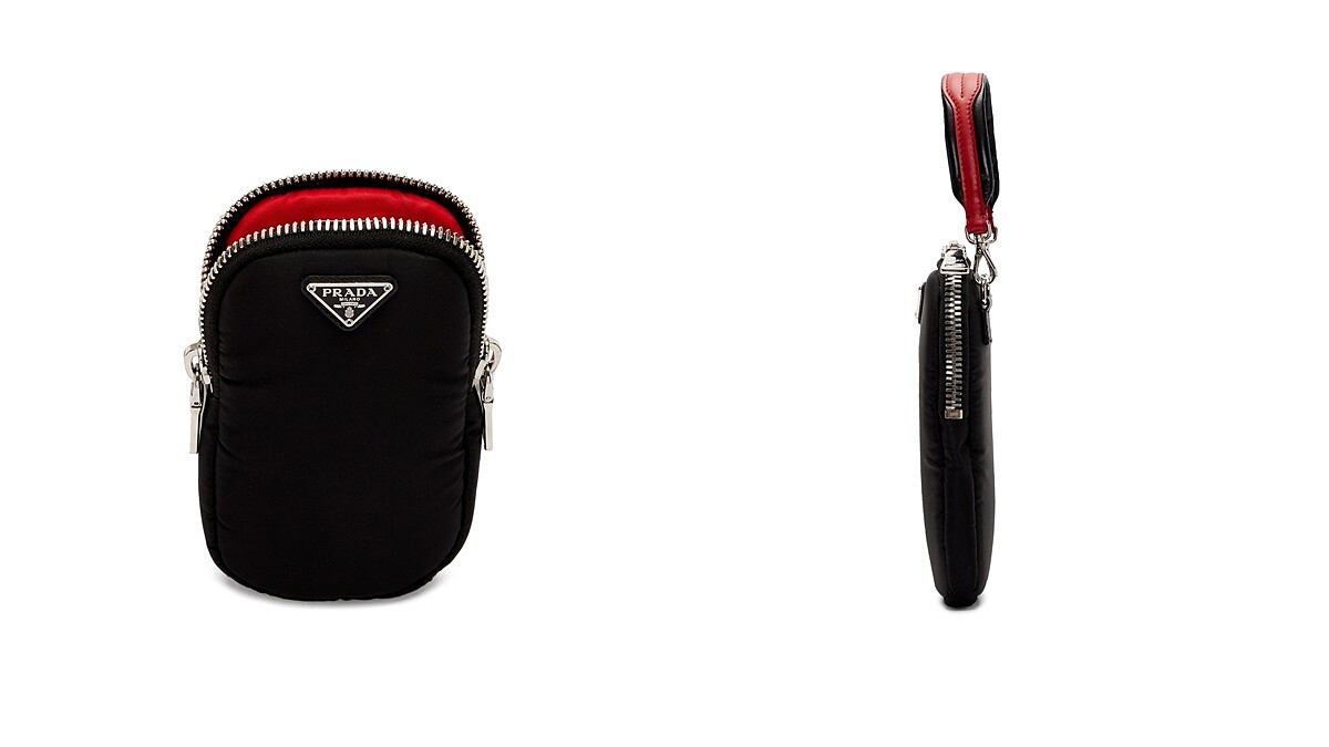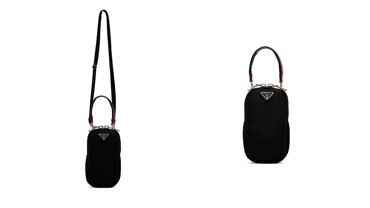 明星商品的尼龍手袋這回變身手機包!Prada近期在SSENSE上架一款手機大小的尼龍包,搭配可拆卸可調節的肩背功能,另外還有手提把的設計,搭載雙開式拉鍊更方便拿取手機,包包正面還加了Prada經典的品牌LOGO銀標。售價為4,450港幣(約18,000台幣左右)