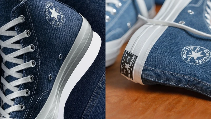 這次登場的Denim系列以經典鞋款Chuck 70s亮相,每一雙鞋款所使用的牛仔布料,皆是將舊牛仔褲回收後重新裁剪再造,因此,每一雙帆布鞋都是獨一無二的,包含低筒鞋和高筒鞋兩種。