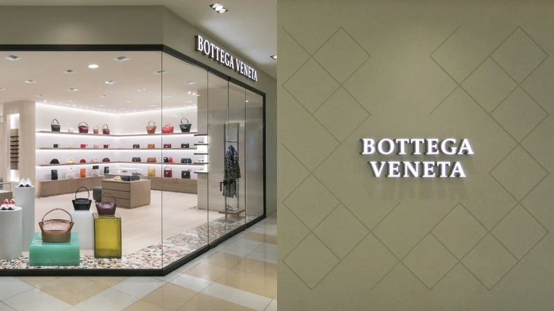 目前全台雖已有11間Bottega Veneta的店面,但這間開設於2005年、位於台中新光三越的店面如今迎來煥然一新的嶄新風貌!不僅外觀牆面漆上了高雅的灰白色石膏,線條交錯形塑出的菱紋樣貌也巧妙呼應著Bottega Veneta的經典編織與其精湛工藝。此外,搭載的大片玻璃落地窗也成功呈現出開放式的摩登意象,即便尚未踏入店內,也可從店外感受到近40坪空間的寬闊感。