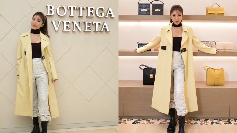 楊錦鏵則身著了科技面料製成的鵝黃色大衣,搭配葡萄紫繞頸bodysuit和水晶裝飾長褲,摩登中又充滿前衛的時髦風範!而她也特別推薦了近期超夯甚至賣到缺貨的「The Pouch」雲朵包,除了拿在手上超顯質感外,內裡的空間也超級足夠!喜愛肩背包或小包的女孩也有中尺寸和迷你尺寸的肩背款可以選擇喔!