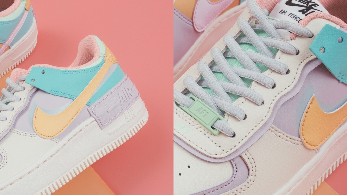 除了粉紅麂皮鞋款之外,NIKE還推出錯位拼接鞋面設計的「WMNS NIKE AIR FORCE 1 SHADOW」,包含粉嫩夢幻感的「馬卡龍配色」、仙氣滿點的「清新全白」以及大膽撞色的「膚色x紅綠配色」,在鞋後跟更藏有小巧思,分別以兩種不同字體的 「NIKE」重複拼貼,全新鞋款將於9月28日下午2點在FRUITION開賣。(NT4,000)