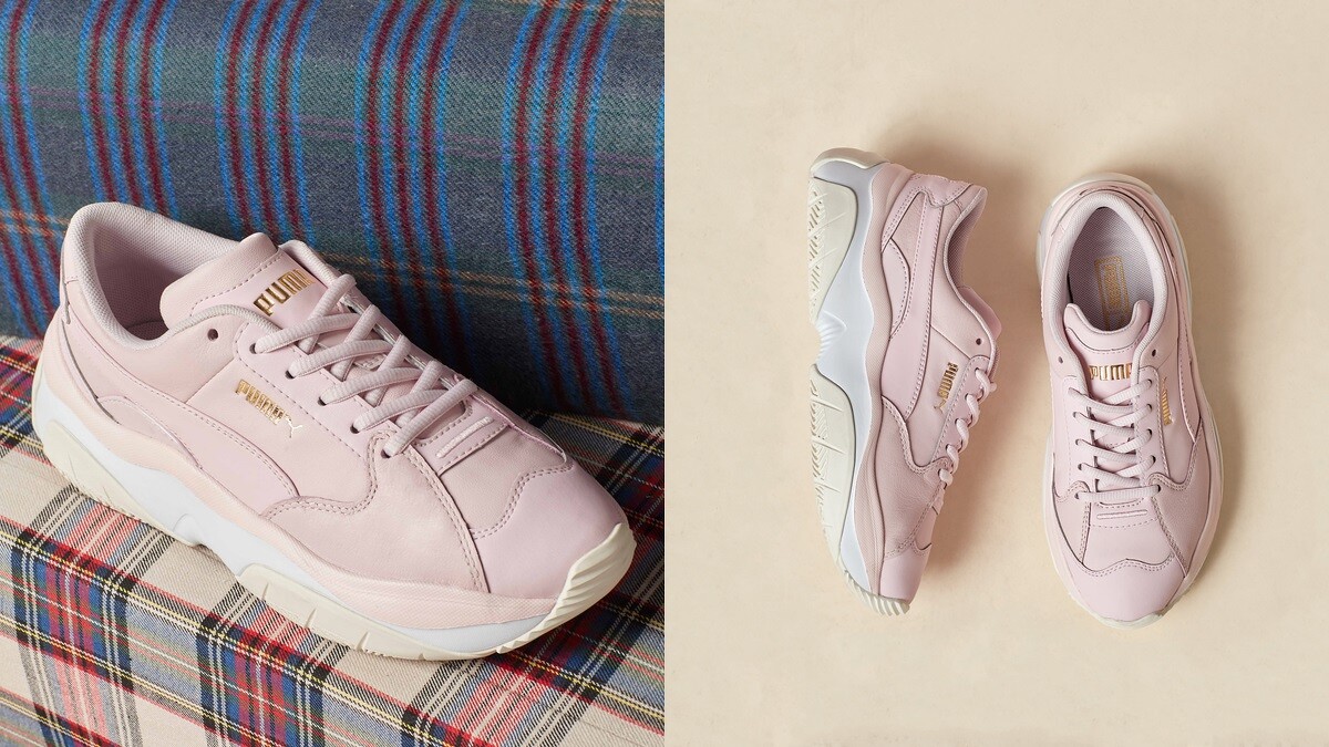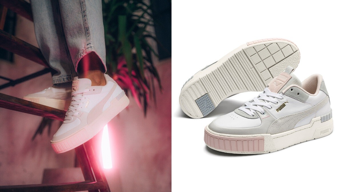 深受嬌小女孩青睞的厚底鞋款PUMA Cali,前身是來自80年代網球場上的崛起新秀 PUMA California,擁有復古簡約的鞋身,搭配網眼、皮革材質拼接,並搭載厚實橡膠大底,兼具美觀與功能性。2019入冬之季再升級上市,以帶有灰階的褪色丹寧搭配粉嫩莓果色點綴厚實鞋跟,運用現代感十足的前衛異材質拼接設計,推出小清新風格的全新鞋款PUMA Cali Sport,即日起全球同步開賣,喜歡灰霧感色系的女孩可不要錯過囉。(PUMA Cali Sport,NT2,980)