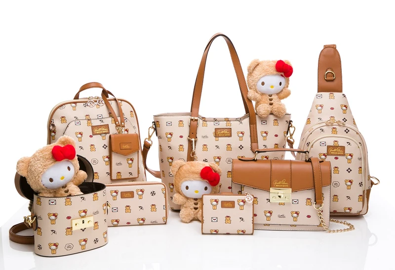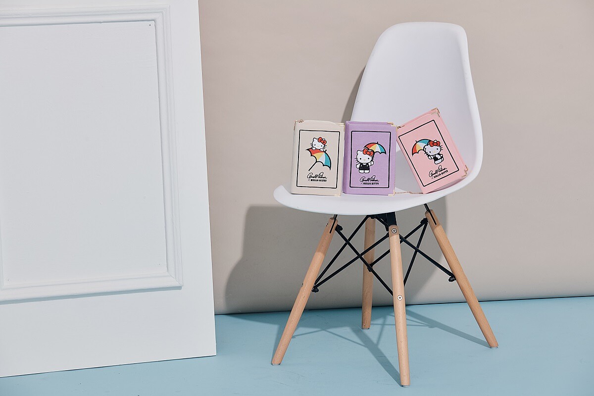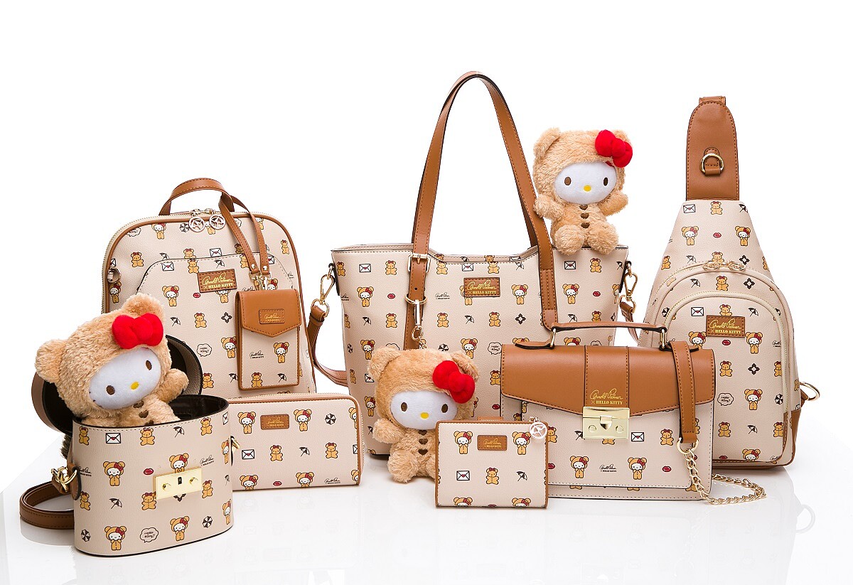 當Kitty穿上熊玩偶裝,變身Q萌可愛教主再搭配紅唇、小傘、信封等俏皮圖案,跳脫過往色系,排列成活潑圖案,並注入從夏天一路發燒到早秋的「奶茶色」-百搭卡其x咖啡色,混搭出最具話題的時尚色調,我愛Kitty;Kitty愛你;熊愛你!