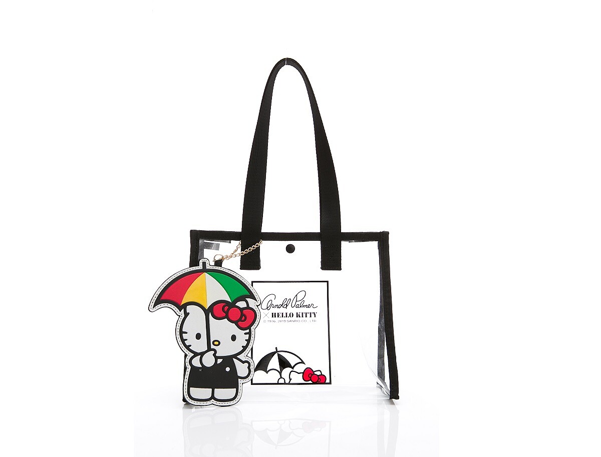 每款大包附有一隻可脫帽的變裝的KITTY熊玩偶吊飾,快拿起妳的入場券~跟著Arnold Palmer小雨傘包包邀您一同進入小熊遊樂園!