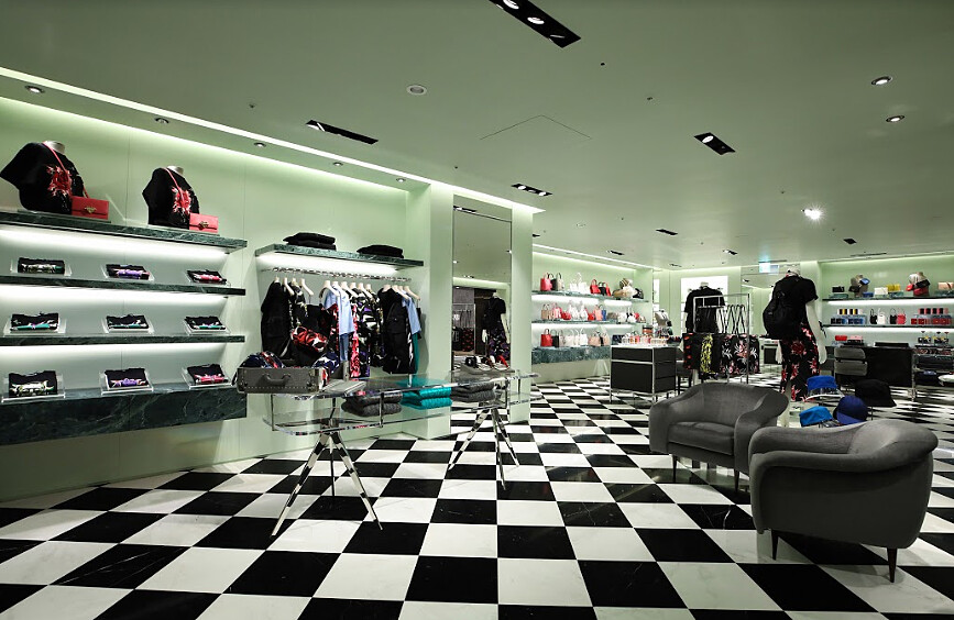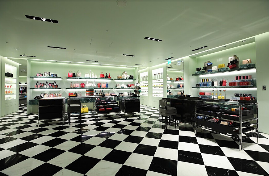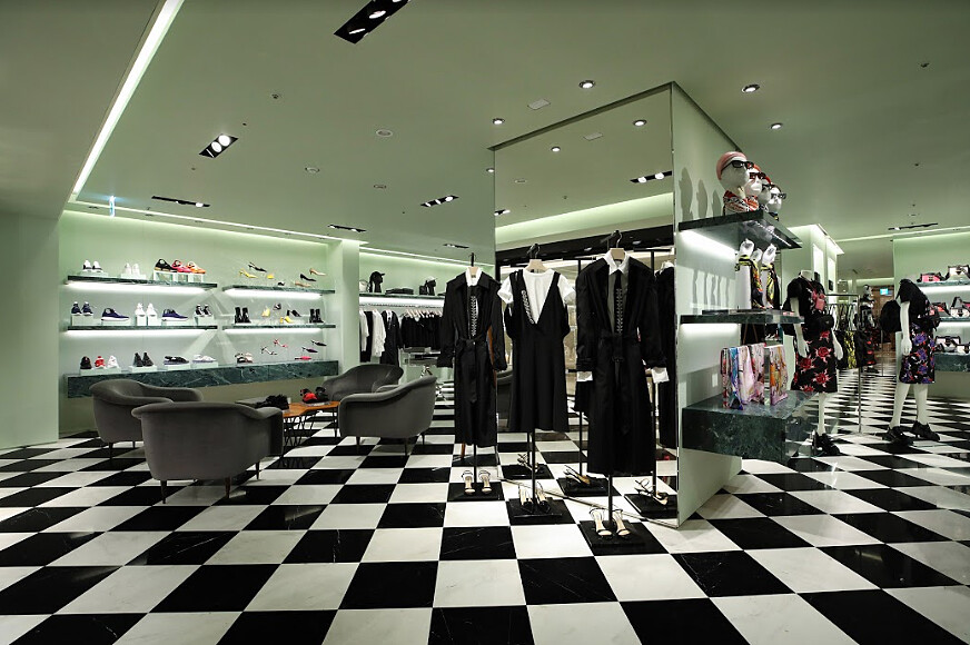 店內裝為全新概念設計,結合品牌一貫的高雅簡潔思維,Marquinia大理石牆面搭配簡約的落地櫥窗,勾勒出奢華精緻的入口意象,經典的黑白格紋地板,顯現出摩登的縉氣勢與氣質。本次新店包含兩個樓面,二樓女裝加上三樓男裝,就是要讓各位逛得不亦樂乎。