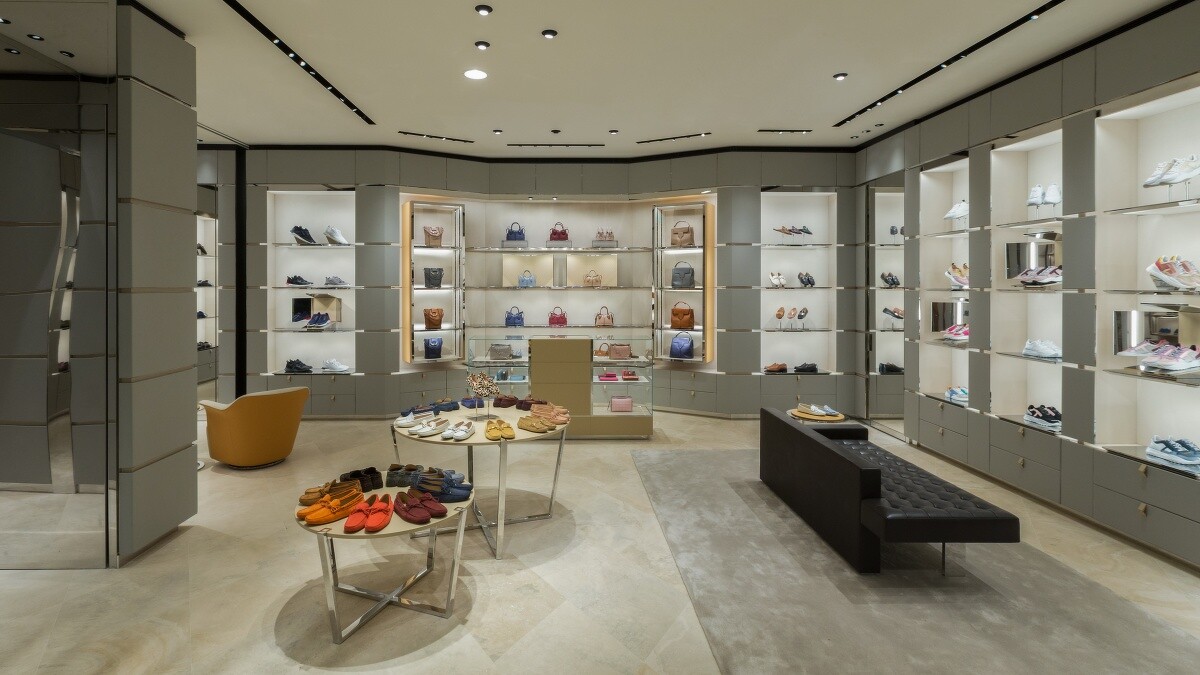TOD’S台中概念店以霧光灰、優雅米白色為基底,搭配豐富色彩的商品點綴,能突顯店內當季特色。值得一提的是,地板以米色大理石紋路打造,搭配質感皮革沙發,為顧客提供舒適的購物體驗。