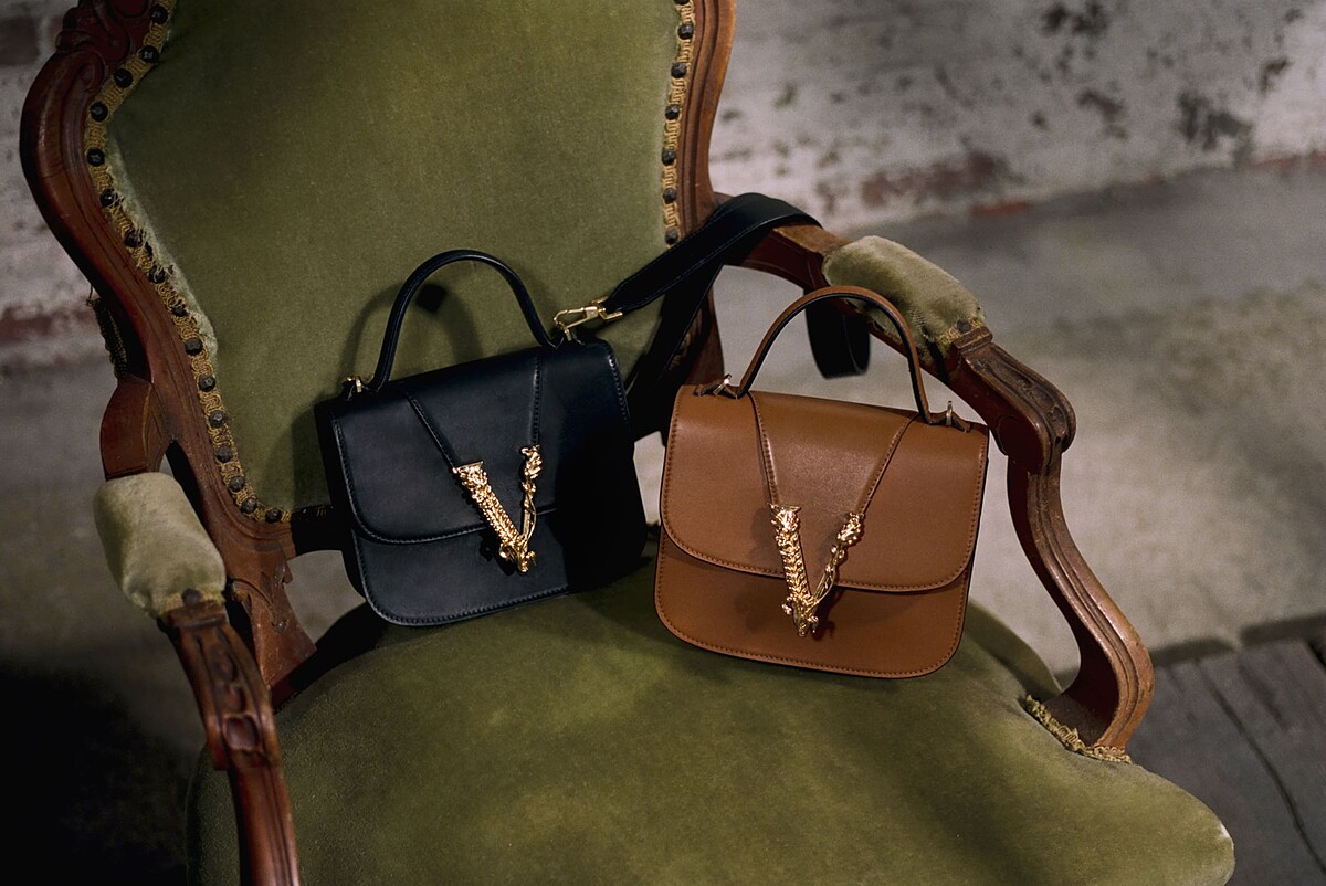 Versace Virtus系列包款採用柔軟小牛皮縫製,備有手提包、腰包、單肩包及晚宴包等多種款式,配色多變而採用不同修飾效果。色調鮮艷奪目,網羅藍綠、桃紅、珊瑚紅等色系,同時推出簡約如駝色、黑色及白色等基調。