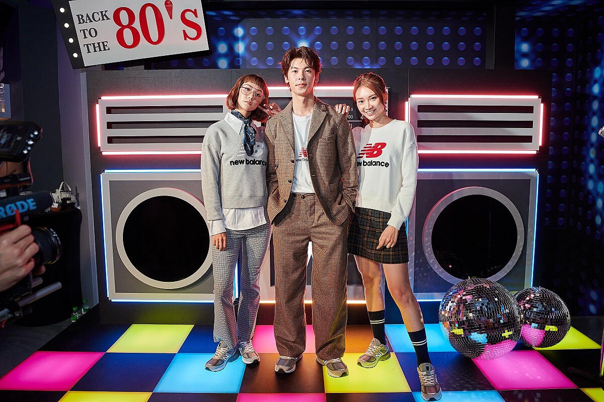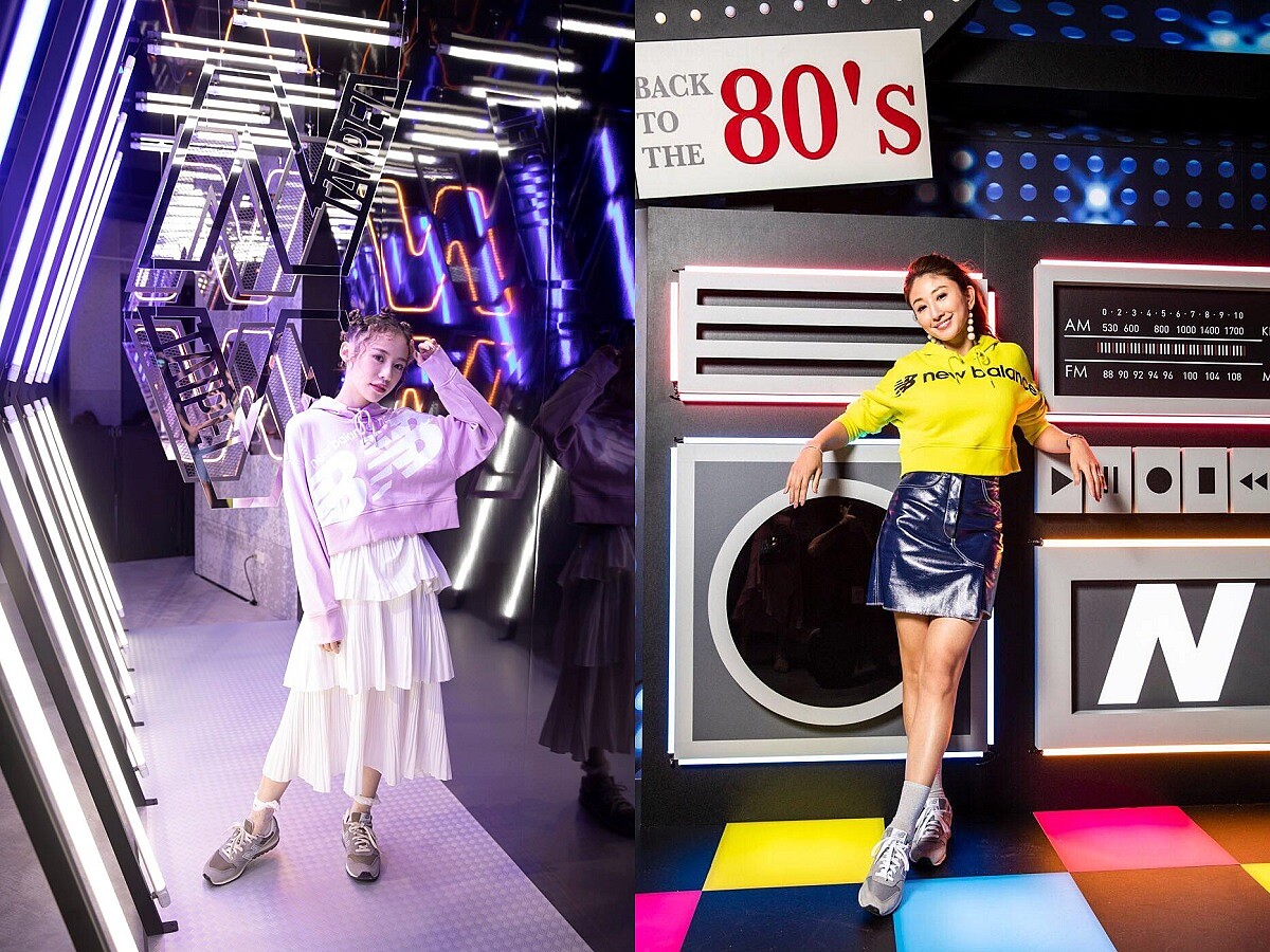 紀卜心選用甜美粉嫩色NB短版帽T搭配蛋糕裙,搭配優雅的996,讓大家見識到NB灰潮鞋也能完美駕馭Sweety Style的過人實力;肌力女神Annie老師整身明亮的時尚運動風混搭,現身在80年代復古區,996修長鞋身更顯細白長腿!