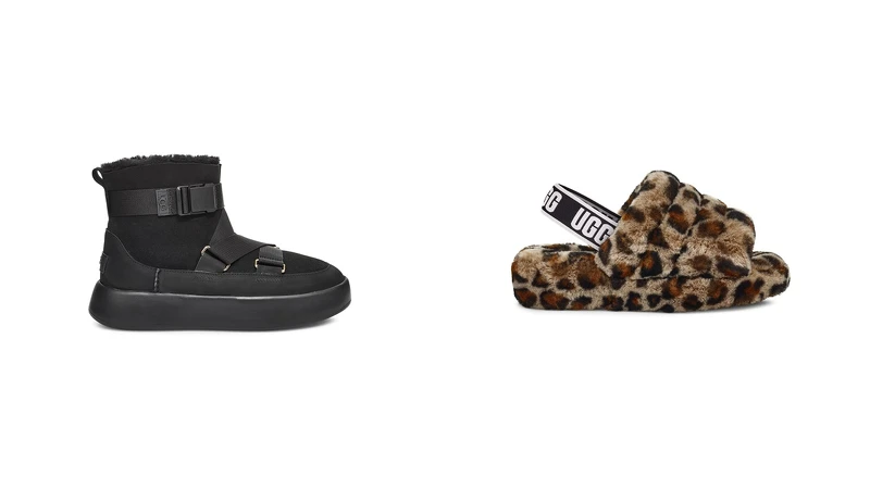 禦寒神器UGG毛茸茸FLUFF YEAH涼鞋推出豹紋款,還有童鞋系列的蝴蝶結經典雪靴