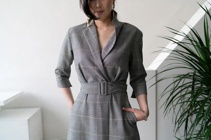 今年秋冬灰色格紋元素持續發燒,還在苦惱沒有穿搭靈感,不妨學Corin投資一件高質感的連身格紋腰帶裙裝,兼具修身與時髦的版型,不需耗費心思搭配就能穿出優雅俐落的風格。V領剪裁設計,還能襯托小臉線條,不落俗套的開衩,踢步間自然流露性感,搭配白色細跟靴,拉長腿部線條,灰與白的配色,刻意不讓沉重的冬天來得太早。如果想要混搭出獨具特色的個人風格,外面還可以搭上帥氣的流蘇黑色皮革外套,結合流行元素與不同面料的搭配,展演出女性的酷勁時尚。