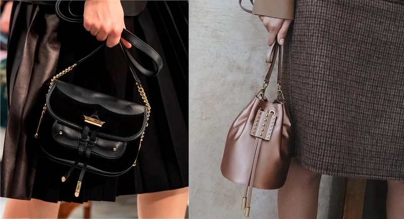 把金屬皮革鏈帶、衝突的異材質拼接設計完美消化的馬鞍包,就是讓人輕鬆體會到用手提的、用揹的都好看到犯規;最近而深受女生喜愛的水桶包,更是使用了充滿柔美女性特性的絲緞材質,同時鉚釘皮革強化出可甜可帥的多樣面貌,兼具的品味功力,瞬間讓M編一眼鍾情沒有之一!