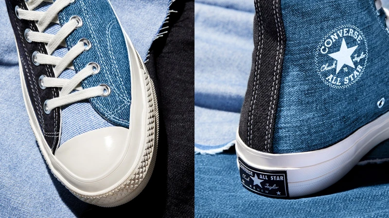 第二代的Renew Denim系列同樣以Chuck 70s鞋款為基底,特別的是這次Converse運用三種水洗牛仔布拼接出這雙全新鞋款,採用蝴蝶鐳射切割成Chuck的鞋面,深色水洗牛仔布製成內側鞋面,淺色水洗牛仔布為鞋舌,而黑色的單寧布則是外側鞋面,也因此每雙鞋款都有三種不同色澤的丹寧布料。