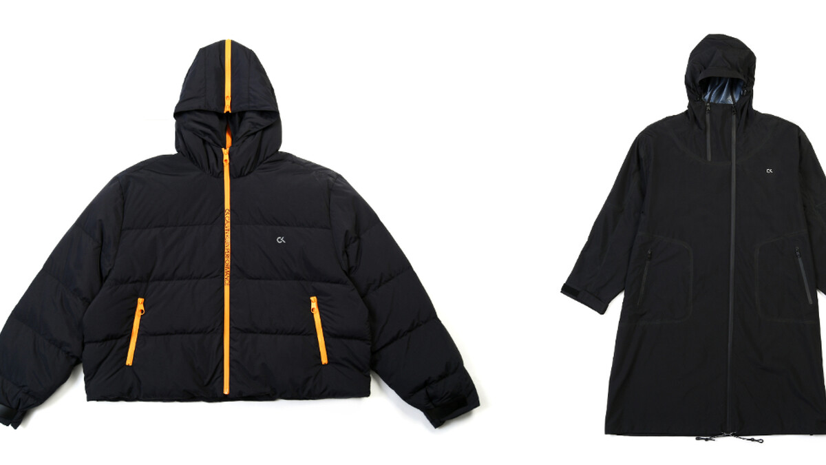 撞色拉鍊設計羽絨外套NT$12,780、Space Lines 系列熱壓無縫長版風衣NT10,880