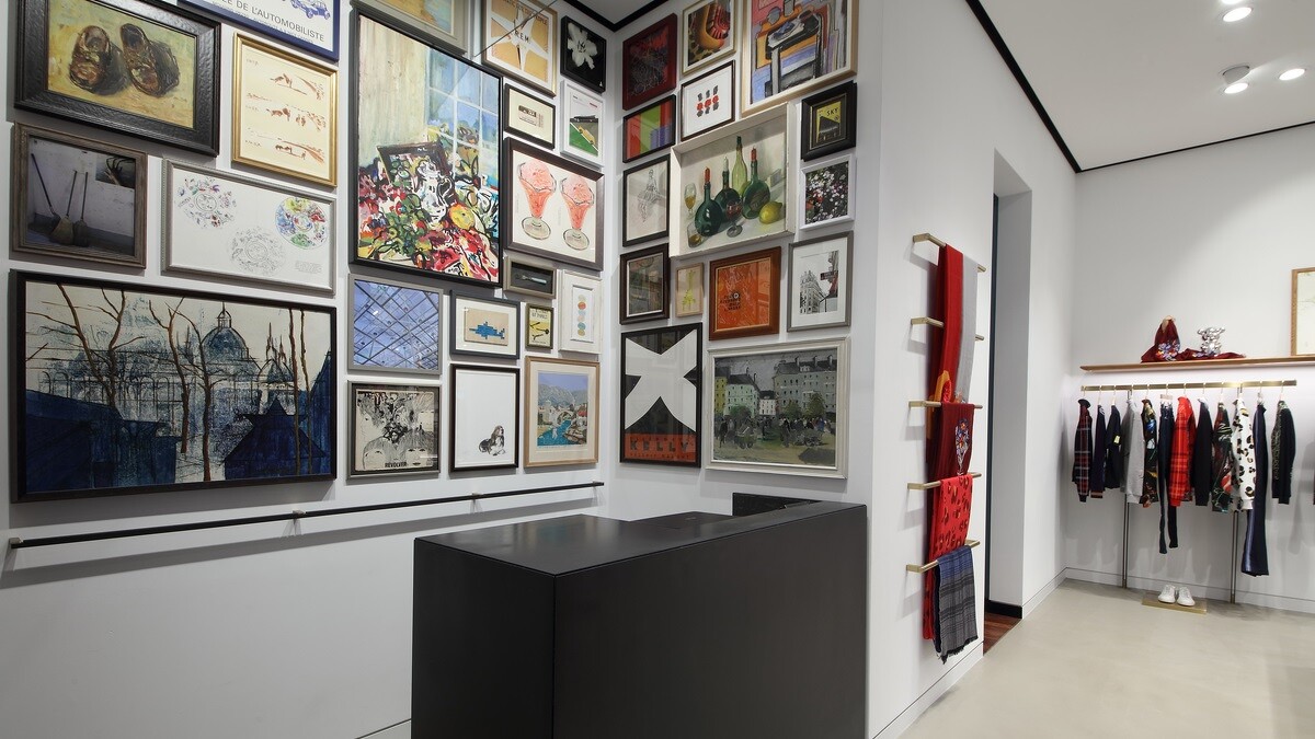 更特別的是,店內擺放著許多Paul Smith收藏的珍品,包含兩張來自1950至1960年代的古董椅,14個生產於1940年代至1970年代的古董鐘,以及收銀台後方的畫作與海報集。