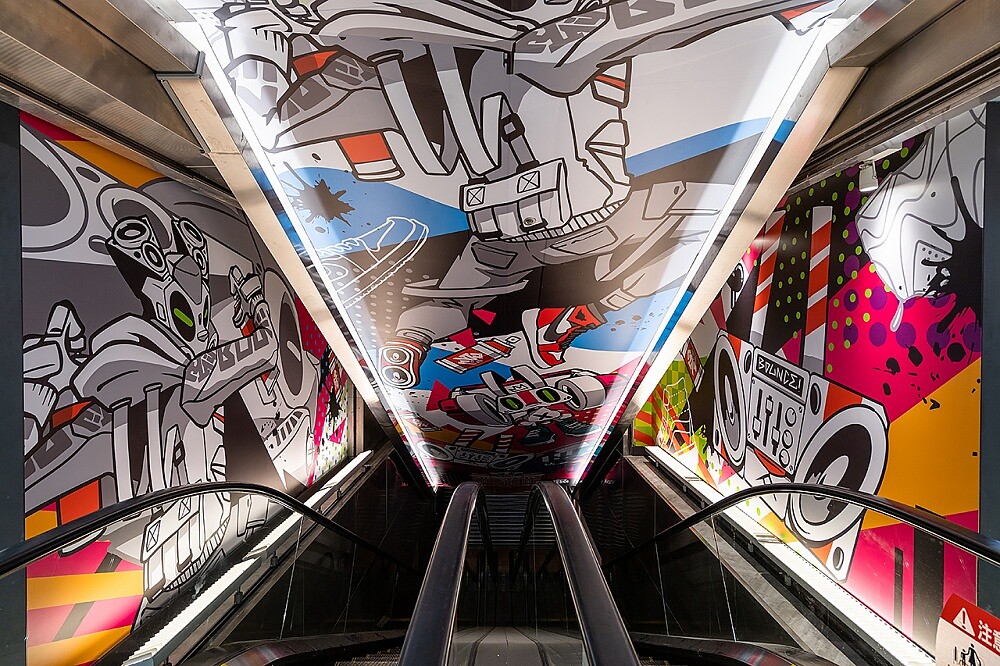 全新店鋪所提供VANS、Converse、FILA、NIKE、Adidas等眾多球鞋品牌,進到店內就能看見大量運用科技LED的屏幕牆面,用來展示各品牌最新商品搭配CENTER STAGE規劃品牌專區,另外,全新ABC-MART GRAND STAGE店舖也緊扣街頭文化與潮流時尚,力邀本地知名塗鴉藝術家BOUNCE,於店中牆面置入特色塗鴉呼應西門商圈強大的潮流文化背景。