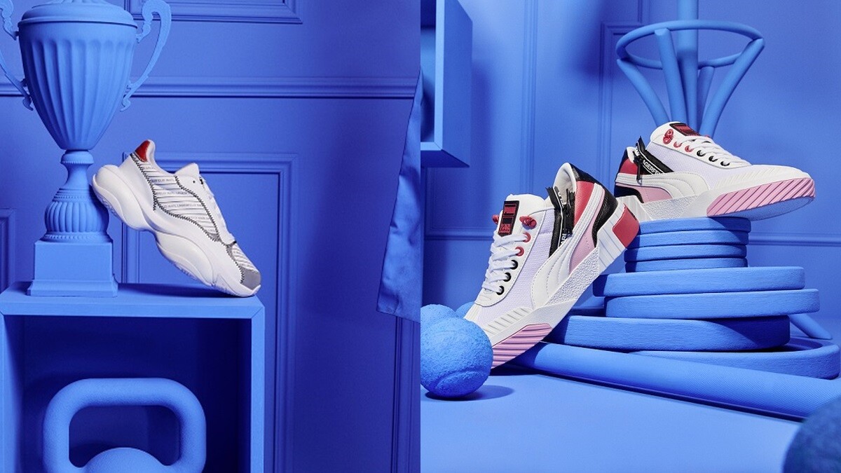 球鞋的部份可不能錯過中性鞋款PUMA ALTERATION by KARL,以純白鞋面為基底,巧妙地將 LOGO 字樣與拉鍊設計延伸使用於鞋側。還有最受女孩們歡迎的PUMA CALI by KARL,以層層堆疊的超高厚底與粉色拼接為特色。