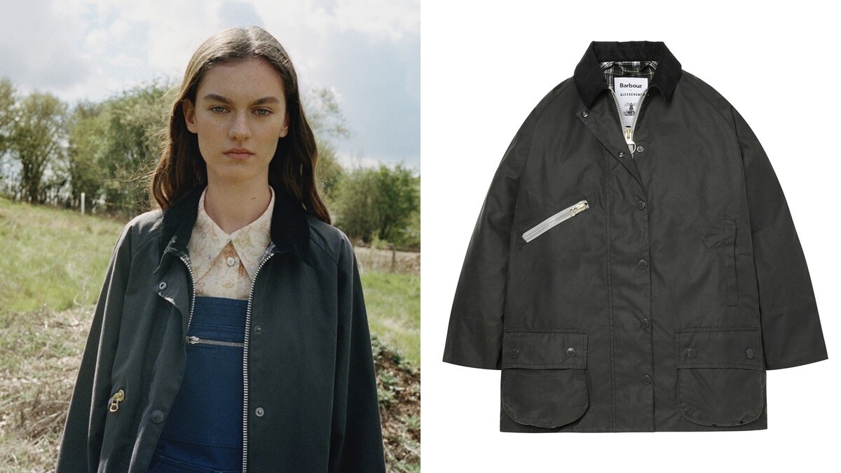 Barbour by ALEXACHUNG Edith Jacket:採樣於經典油布狩獵外套Beaufort,以撞色與復刻格紋內裡設計。