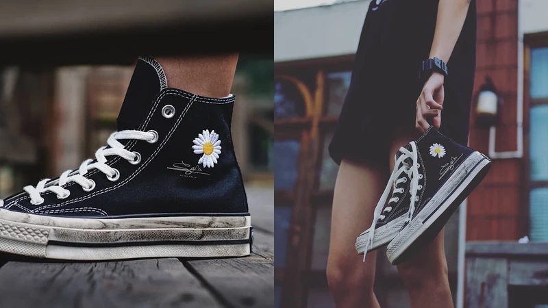根據 @s.sam.group 最新曝光的照片,PEACEMINUSONE將和Converse打造聯名系列,以經典鞋款Chuck 70為藍圖,在鞋側邊加入PEACEMINUSONE象徵性的小雛菊刺繡,這也是GD最愛的花朵圖案,並在鞋身側邊壓印上PEACEMINUSONE Logo,而鞋底處則運用刷色手法呈現。