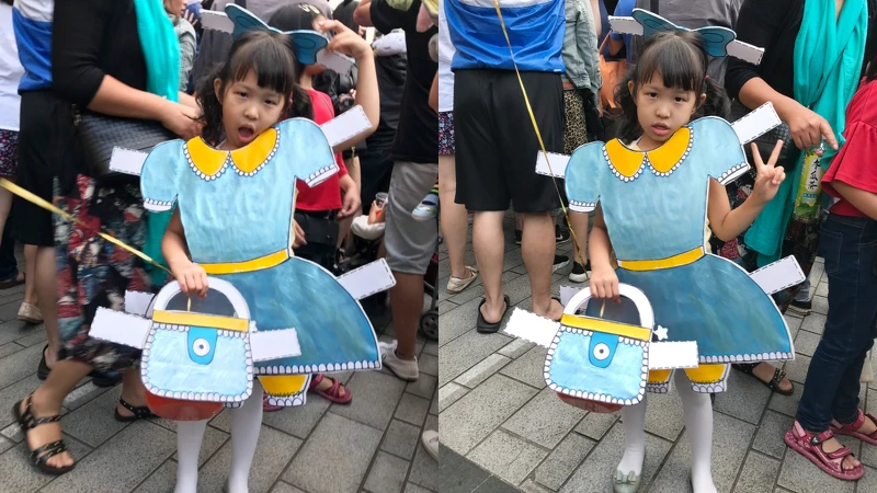 相信不少女孩都應該有經歷過紙娃娃的年代,甚至自己親手DIY繪製娃娃的衣服和包包等,彷彿自己就是一位專業的服裝設計師,如今一對母女便一起將這個少女夢實現!經過一番討論和身形比例的修改,妹妹於萬聖節活動當日穿上了這件藍底黃領的俏麗洋裝,頭戴的蝴蝶結髮飾和手提的手拿包都是完整造型的滿分配件!