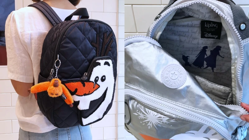 討人喜愛的「雪寶系列」分別以Kipling輕盈經典尼龍和菱格縫線製成的後背包亮相,不僅包包內裡打開有著安娜、艾紗和雪寶的身影外(多款手袋內均有),毛圈織出的雪寶臉龐口袋更將萌度大大提升!