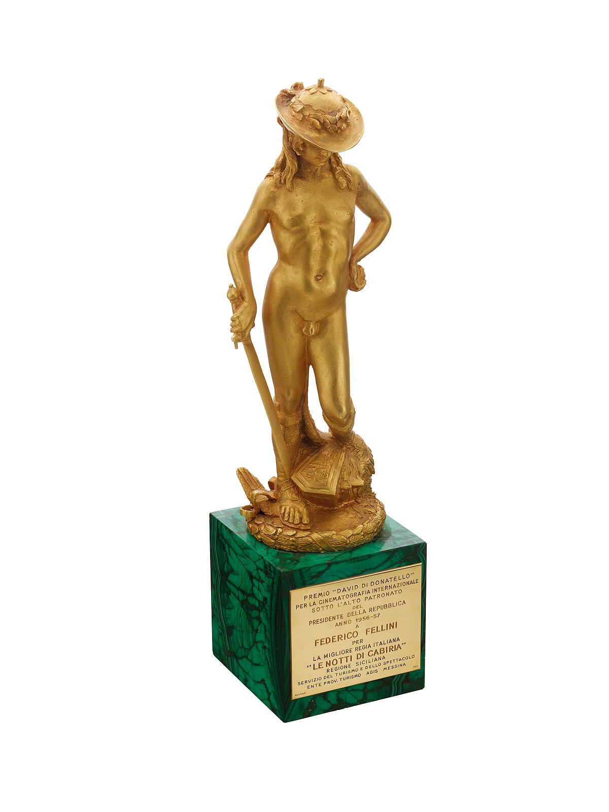 Bulgari 為義大利最重要的電影獎項 David di Donatello 打造的頂級黃K金獎盃,創作時間約西元1956年。