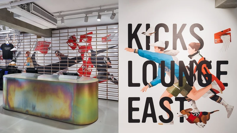 秉持永續與創新的品牌精神,台北東區NIKE KICKS LOUNGE EAST以全新面貌隆重開幕,為提倡環保永續等議題,全店運用約50,000只舊鞋回收再製NIKE GRIND材料鋪設而成,並結合台灣鐵窗花工藝以及閩式瓦片設計,打造具有在地文化的店鋪風格。