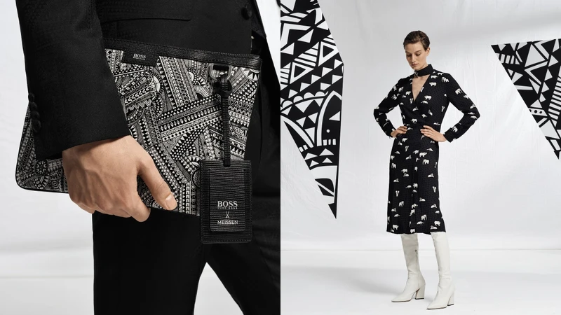 然而為了歡慶聖誕佳節的來到,Boss特地找來同樣具有百年品牌歷史的同家鄉名瓷品牌Meissen合作,賦予2019節日系列精美的藝術美學。取材自Meissen著名的「The Big Five」動物瓷器系列,Boss將五隻栩栩如生、搭配幾何圖形繪製而成的非洲象、豹、大象、犀牛以及水牛化為圖騰印花,轉印在了大衣、毛衣、襯衫、手袋等皮件,當然,黑白兩色的搭配也完美體現「The Big Five」系列的設計精髓。