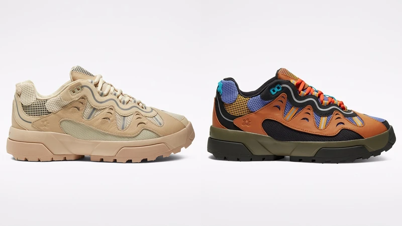 另外,Tyler專研Converse悠久的品牌歷史和眾多經典鞋款,在戶外、跑步和籃球鞋中得到啟發,推出一款有著戶外風格又不是登山靴,並採用Converse ERX中底,外觀仿效籃球鞋設計的Gianno鞋款,分別推出大地色、奶茶色兩個選擇,除了鞋身印有標誌性小花圖案,更以3M反光設計貫穿整雙鞋。