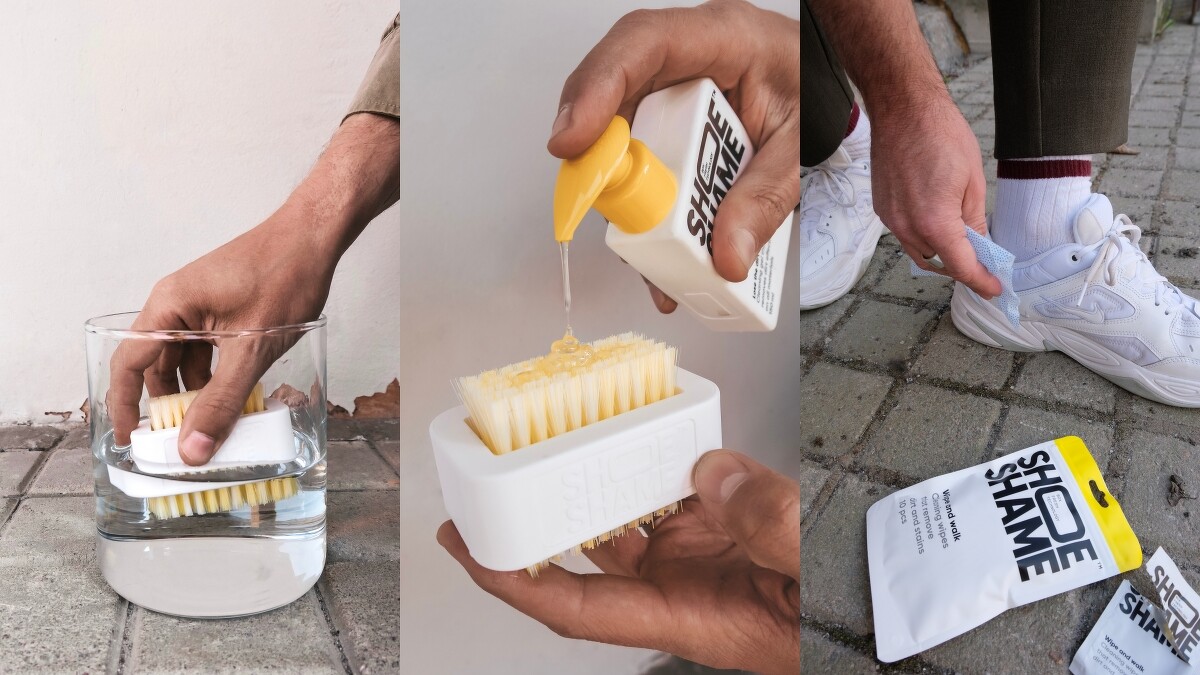 經典又百搭的白鞋是每個人鞋櫃裡必收的不敗單品,但最令人崩潰的,往往就是那一小點污漬破壞整雙鞋的美感。送洗花錢又麻煩,來自瑞典的球鞋清潔專家Shoe Shame聽到了大家的心聲,採用環保成分並結合先進技術,打造一系列保養組合。極簡的標示說明,讓手殘也能輕易上手,再也不怕自己洗白鞋洗到泛黃!以下是你需要的球鞋保養聖品: