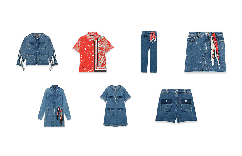 Maje First Stone系列包含流蘇寬版外套、高腰牛仔褲、傘形牛仔短褲、刺繡迷你裙、牛仔娃娃裙、假兩件式洋裝及人造絲襯衫共7個品項。並於11月起在Maje專賣店販售。