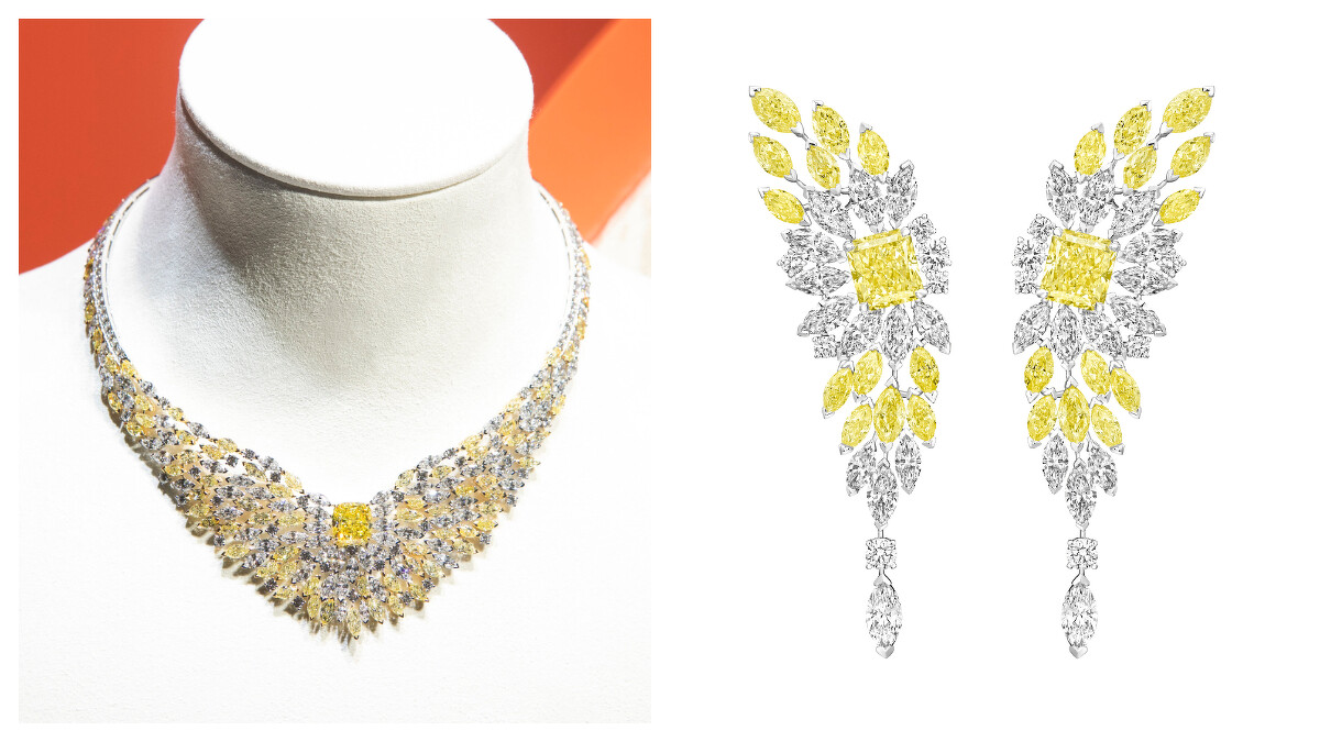 1.「黃金時刻」黃鑽頂級珠寶鑽石項鍊及耳環