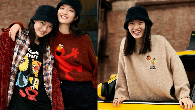 女裝系列像是Elmo圖案的酒紅色針織上衣、印有五位角色的長版上衣、溫柔大地色的針織毛線衫。男裝重點單品則有滿版設計的芝麻街圖案印花外套及黑色吊帶褲、經典Logo的圍巾。童裝系列則包含滿版圖案的吊帶褲、五位角色的棉T。全系列現已於全台門市正式發售。