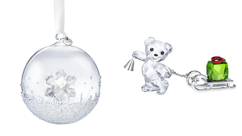 另外,每年都會推出經典聖誕掛飾的SWAROVSKI,今年則推出最新版的年度限定聖誕球掛飾,而備受歡迎的經典角色Kris小熊也換上聖誕新造型,拉著銀色金屬雪橇並載著綁有紅色蝴蝶結的綠色禮物盒登場。