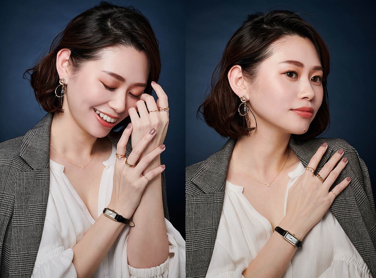 Stella覺得突顯職場女性的專業性,其實是不需要以剛硬又制式的樣貌呈現,應該是在秉持專業之餘,讓自己呈現高雅優美且柔潤的美好外在,同時保有堅韌果決的心態,才是最符合當代在職場上有出色表現的女性形象。所以她會建議大家不妨將最常見的西裝與襯衫組合搭配,稍稍加入變化巧思,白襯衫以輕透飄柔材質為主,外罩秋冬最受歡迎的歐風復古細格紋圖樣西裝,再佐以ete一系列纖細柔美卻能在光線下散發迷人光采的輕珠寶首飾點綴,不浮誇不強勢不招搖,卻依舊能擁有滿滿存在感,就如同菁英女性所獨有的曖曖內含光特質。