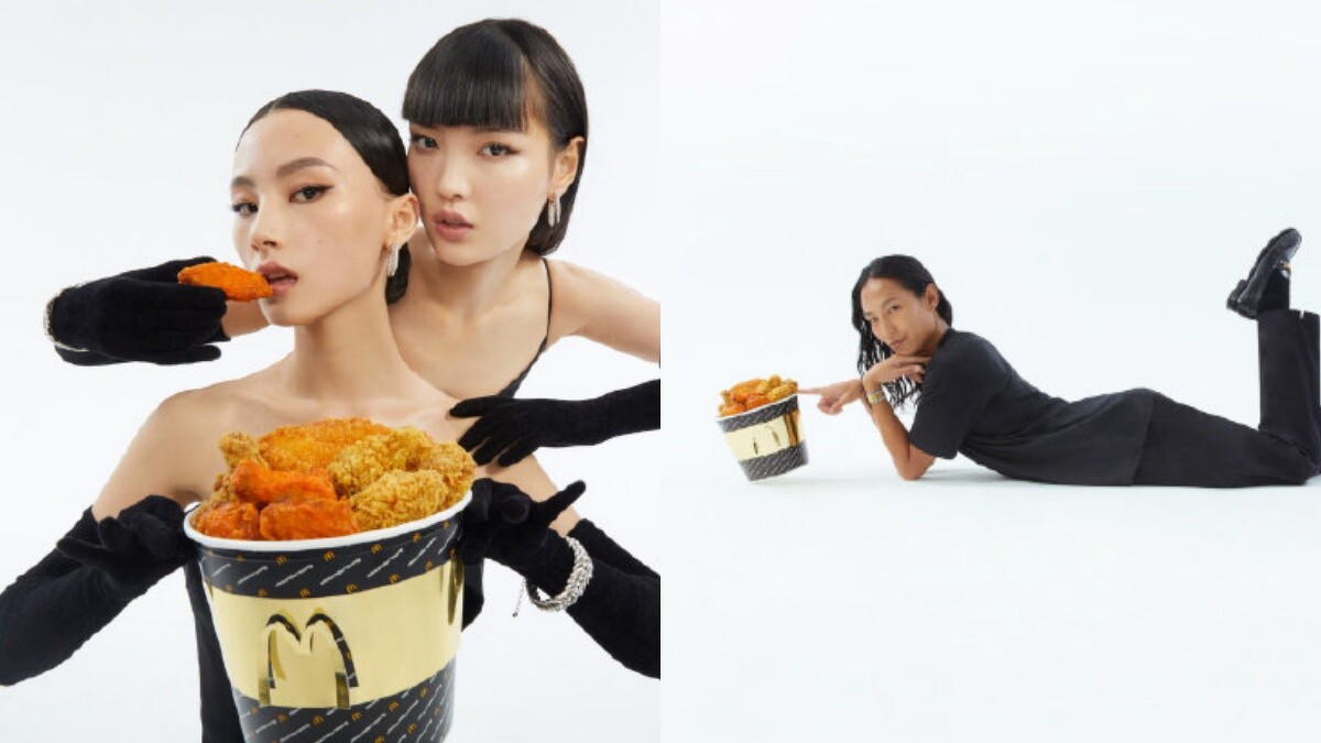 雖說並如Alexander Wang在訪問中所期望與科技品牌的合作,但此次與麥當勞的合作無疑將他的事業版圖再度拓展。在釋出的形象照中,能夠清楚看見Alexander Wang將購買麥當勞餐飲時所提供的紙袋轉化為其中一個手袋設計,並透過天然摺痕紋理的皮革體現紙袋的效果。另一款黑色竹編野餐籃則以精緻的作工和大容量空間取勝。然而若你是在找尋特別款的話,那麼圓桶造型+金色裝飾的“炸雞桶”絕對能滿足你的需求。