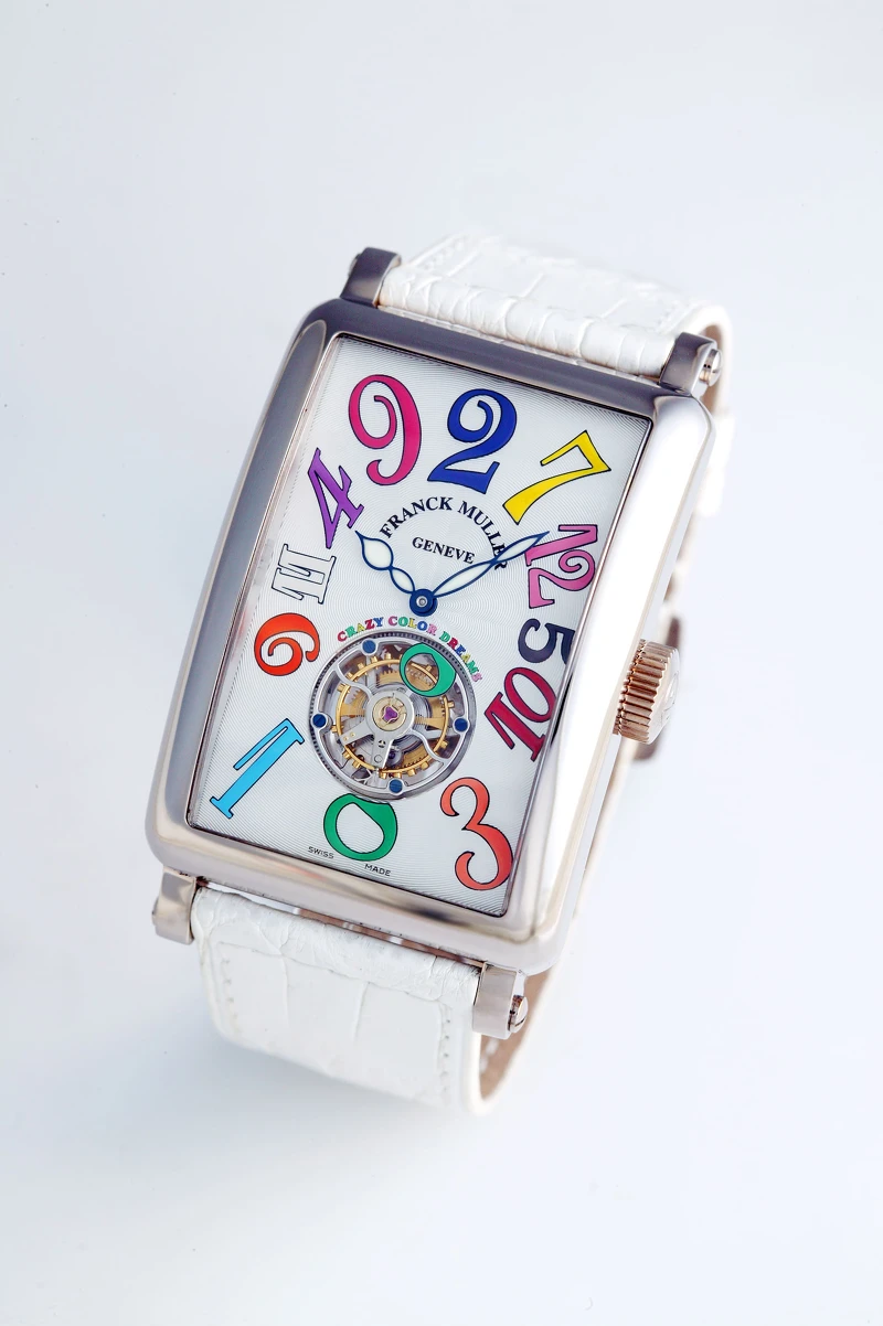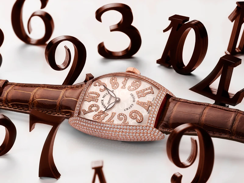 Crazy Hours 腕錶誕生於2003年,靈感來自於創始人Franck Muller先生在模里西斯的旅行,你知道的,旅行總能激發創作者的想像力,對於時間向來有獨到見解的Franck Muller先生認為儘管時間有其必然的規律,但也充滿了許多可能性,那麼,我們何不以更輕鬆、有趣的方式來面對每一分每一秒都可能發生的驚喜?
