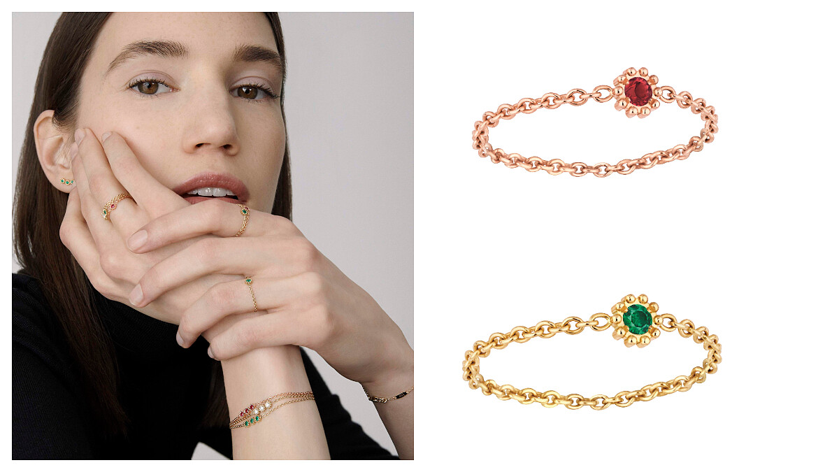 Mimirose 是 Dior 今年推出的全新珠寶系列,巧妙揉合鍊墜與當初締造熱潮的 minioui 單鑲寶石的超微型珠寶,搭配 Rose des Vents 邊緣的穀粒鑲嵌,機忽視完美結合了 Dior 輕珠寶系列最重要的DNA了,細緻的黃 K 金或玫瑰金搭配極小巧的鑽石、紅寶石或祖母綠,迷你造型真的超可愛,尤其戒指無論是多個疊戴,或者與其它戒指收藏混搭,都很時髦好看。