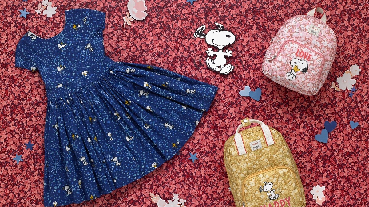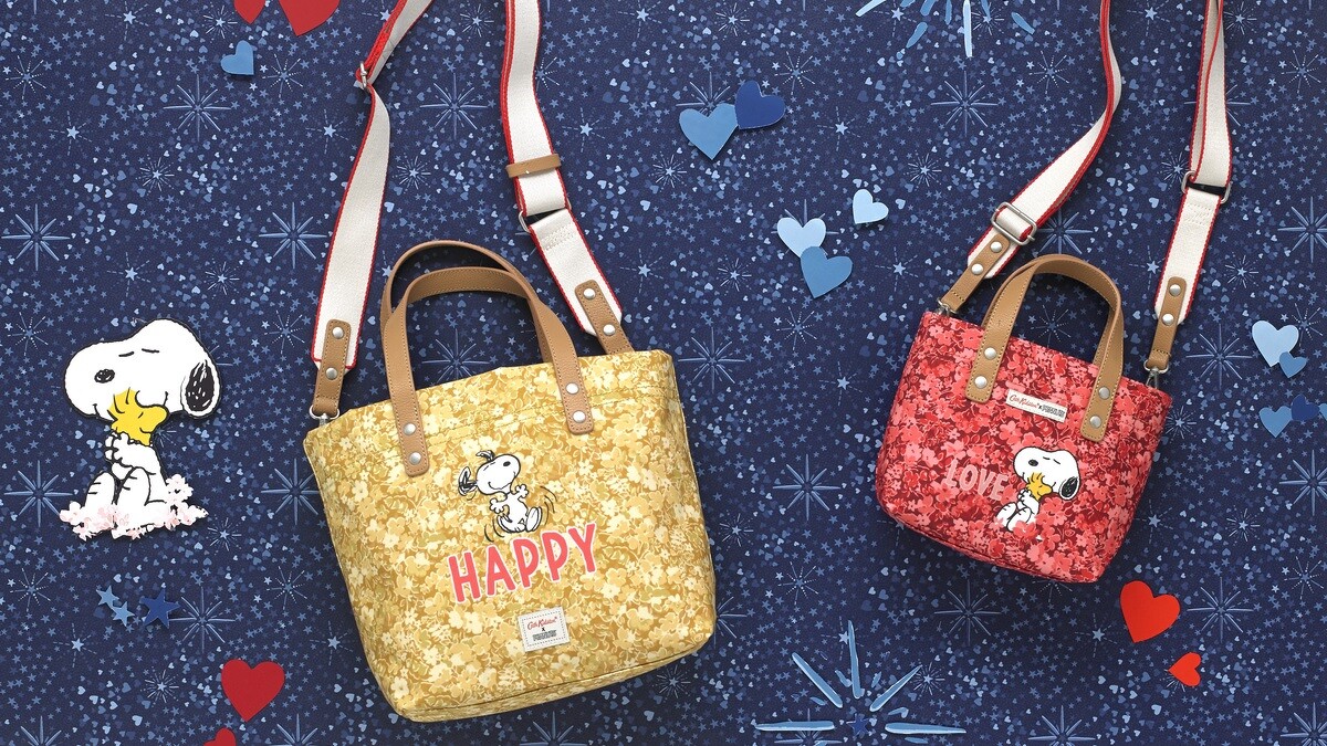 Cath Kidston設計團隊從史努比復古漫畫封面中汲取靈感,將花卉、愛心圖案巧妙融入有濃烈聖誕氣氛的Midnight Stars圖案,背景則採用復古又華麗的色調,將帶著微笑的Snoopy以坐或招牌躺的方式,呈現於手袋及配件上,包含後背包、托特袋、皮夾、化妝包等品項。