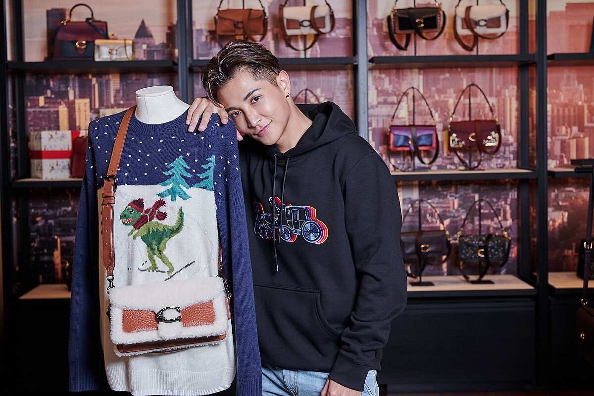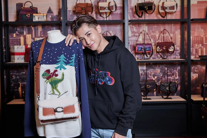 聖誕節約會想穿得休閒舒服,但又想保有節慶感嗎?阿蹦說大家可以選擇 COACH這款經典的馬車圖騰上衣,再搭配上亮色系的配件點綴,像是他手上的全新男士手袋Pacer,簡單俐落的輪廓與鮮明色彩,再融入收納隔層實用機能,根本完美,他說:「妳們看,我現在是不是有種欠被約走的感覺呢!」