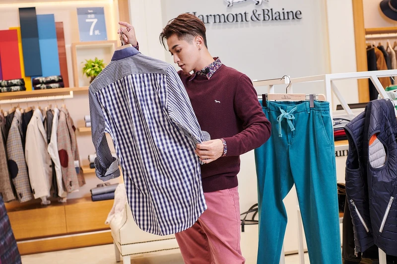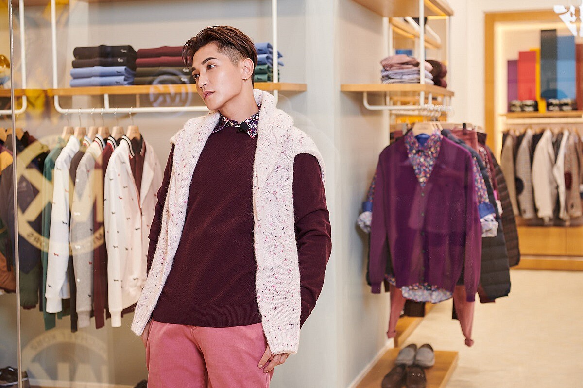 女生們看完自己的夢幻購物清單,也來幫自己的另一半男神物色吧!如果妳們喜歡另一半穿著是比較時尚與休閒兼具的風格,那阿蹦就要來熱情推薦Harmont & Blaine這系列單品,像他身上穿的野莓深紅色圓領經典針織衫,搭配上碎花襯衫,再佐以淡粉色針織衫與粉色調長褲,瞬間秒變身成為年輕卻又不失莊重感的男神LOOK。