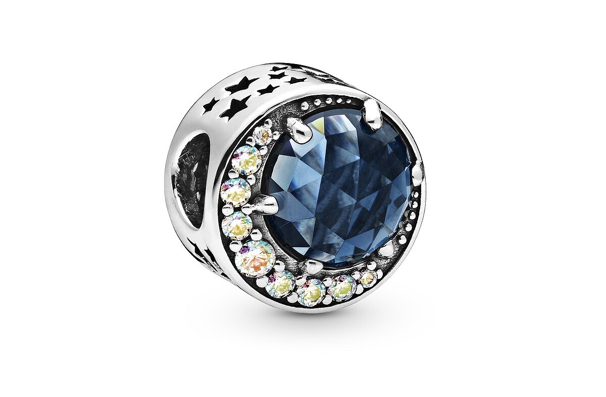 漾盪虹光效果的月牙形鋯石搭配藍水晶營造湛藍星空之美,呈現神秘綺麗極光的靈動閃耀模樣,簡直就是夢幻到最高點