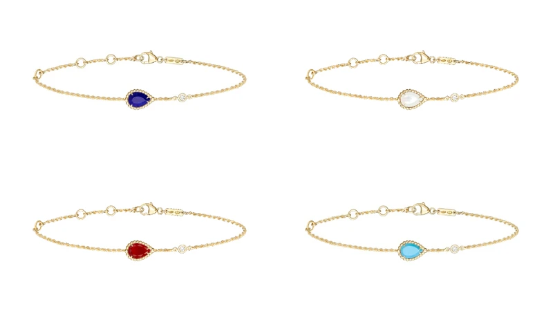 蛇在西方珠寶世界中具有重生、強大生命力的美好意涵,而 Boucheron 自1968年起便推出以靈蛇為主題的 Serpent Bohème 系列,是品牌最經典的設計之一,以溫婉的水滴造型象徵蛇首,凹凸有致的蛇身在黃金鱗片下迤邐生姿,精緻細膩的黃金750鍊帶搭配0.65~0.9克拉的青金石、紅玉髓、白色珍珠母貝、綠松石等有色寶石及0.03克拉鑽石,嬌媚瀟灑、自在輕柔,是品味的極致展現。